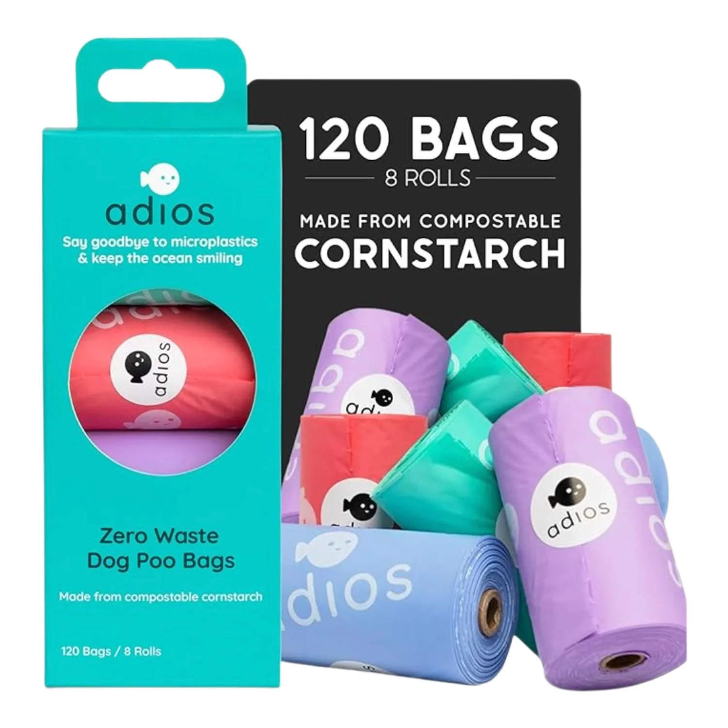 Compostable Dog Poop Bags, 120 Count (8 Rolls) - Rainbow Colours - Extra Thick, Leakproof, Odour Proof Dog Waste Bags - Made from Compostable Cornstarch - Easy Tear Rolls
